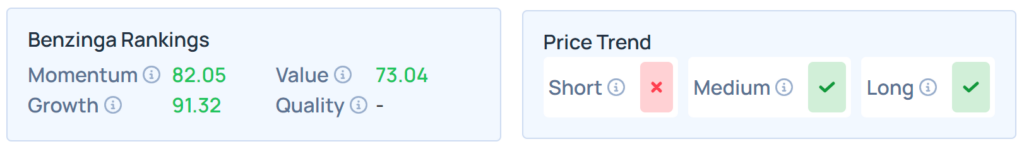 Benzinga Edge Stock Rankings gives Berkshire Hathaway’s Class-A shares a Growth score of 91.32% and a steady Momentum of 82.05%. Check to see how BRK’s Class-B shares compare.