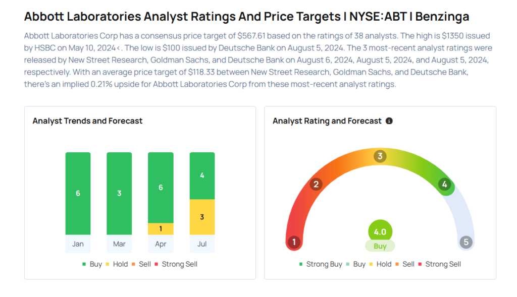 - Mizuho analyst Anthony Petrone maintained Abbott with a Neutral and lowered the price target from $140 to $135.